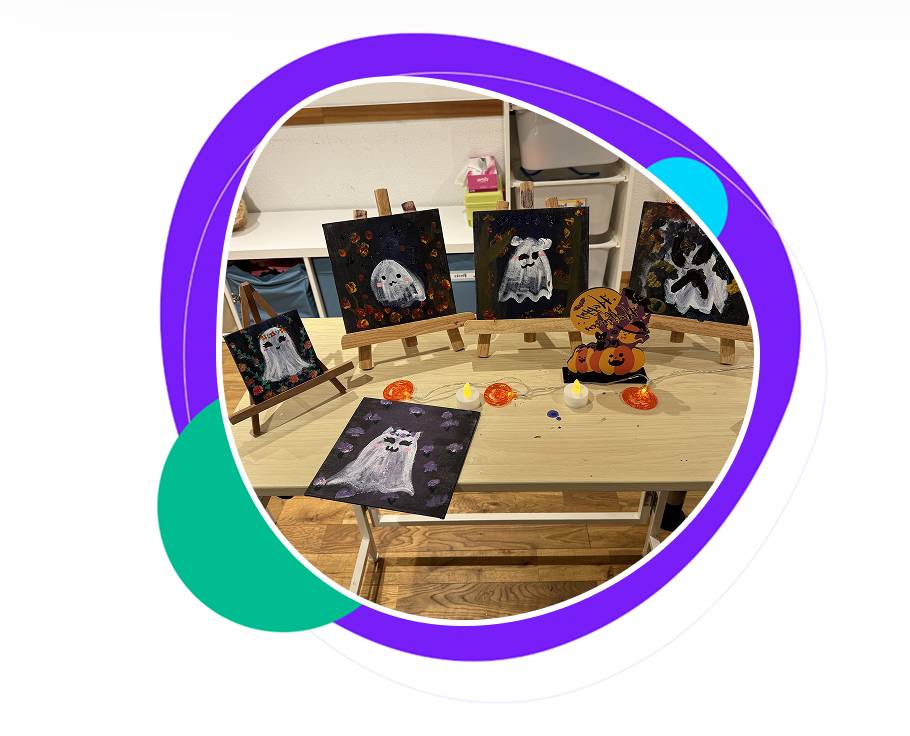 色・形・素材を使いながら、英語での表現力を育てるクラスですアート制作を通して「見て・聞いて・話す」体験を重ね、感性と思考を英語でつなげる レッスンを行います。創造する楽しさの中で、自然に英語が身につきます。