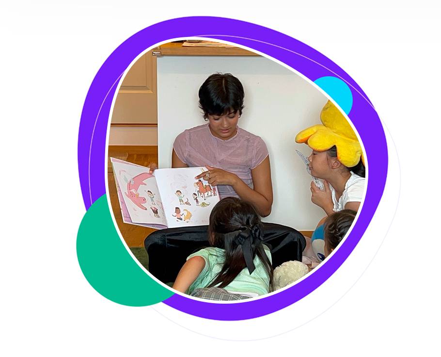 英語の絵本や物語を通して、読む力と考える力を育てるクラスです。登場人物の気持ちやストーリーを英語で感じながら、自分の言葉で意見や感想を伝える活動を行います。物語の世界を通じて、英語で考える力を伸ばします。